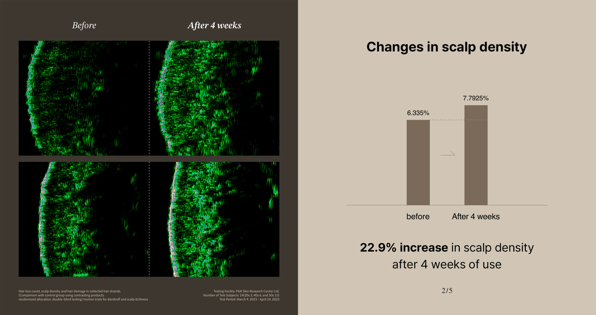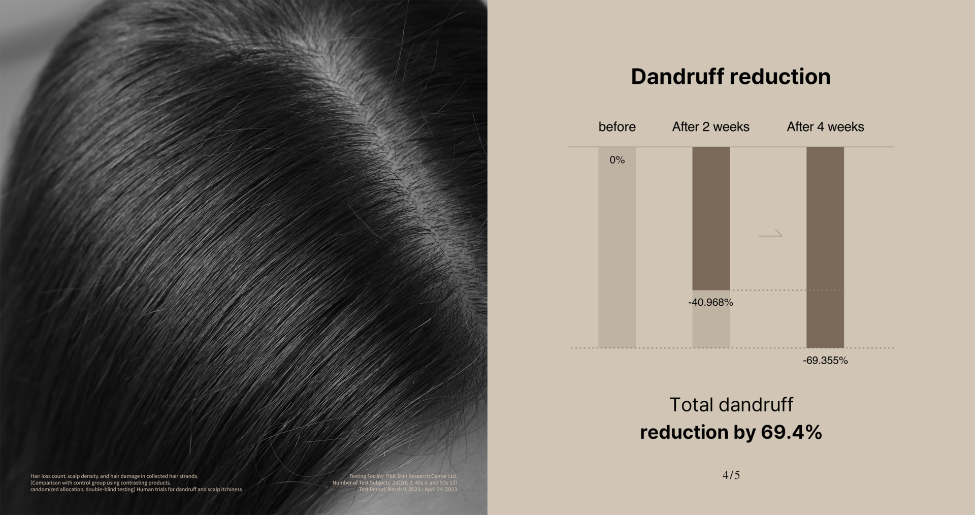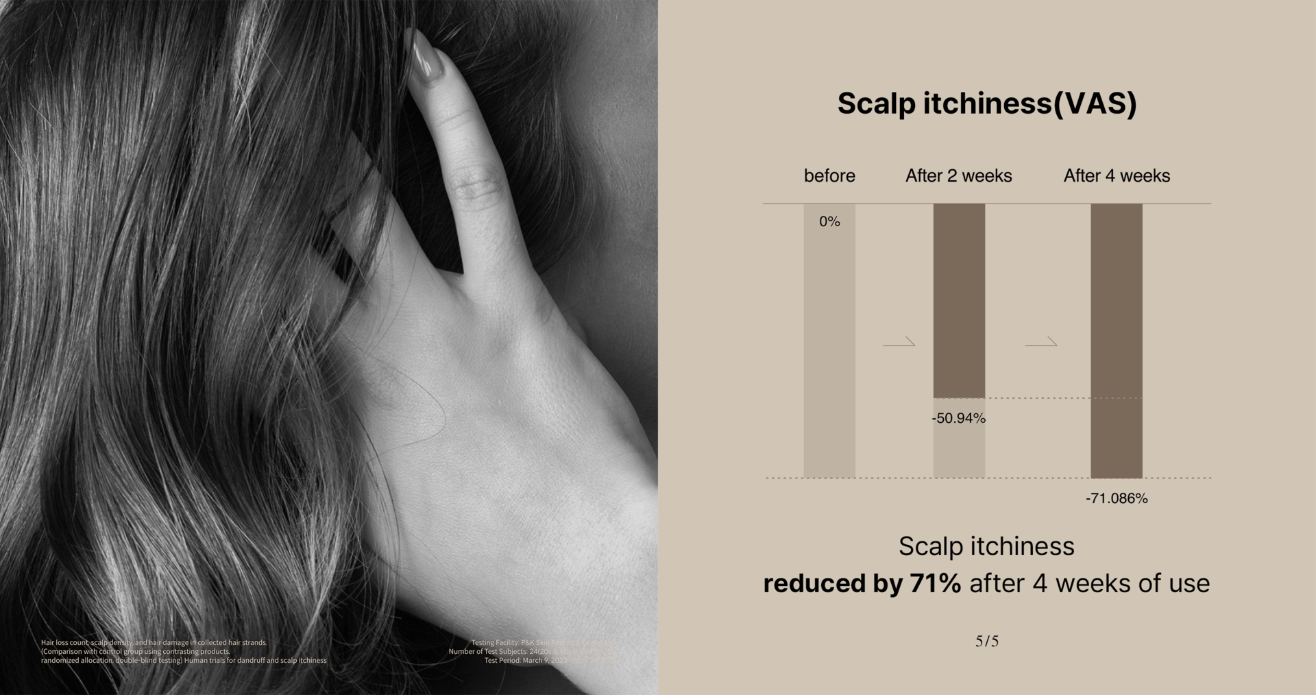 มี AHA และ BHA ช่วยบำรุงหนังศีรษะแห้ง โดยการเพิ่มความชุ่มชื้นให้แก่หนังศีรษะ รวมถึงใช้วิธีการสกัดหรือการหมักเพื่อเพิ่มประสิทธิภาพของสมุนไพรอีกด้วย